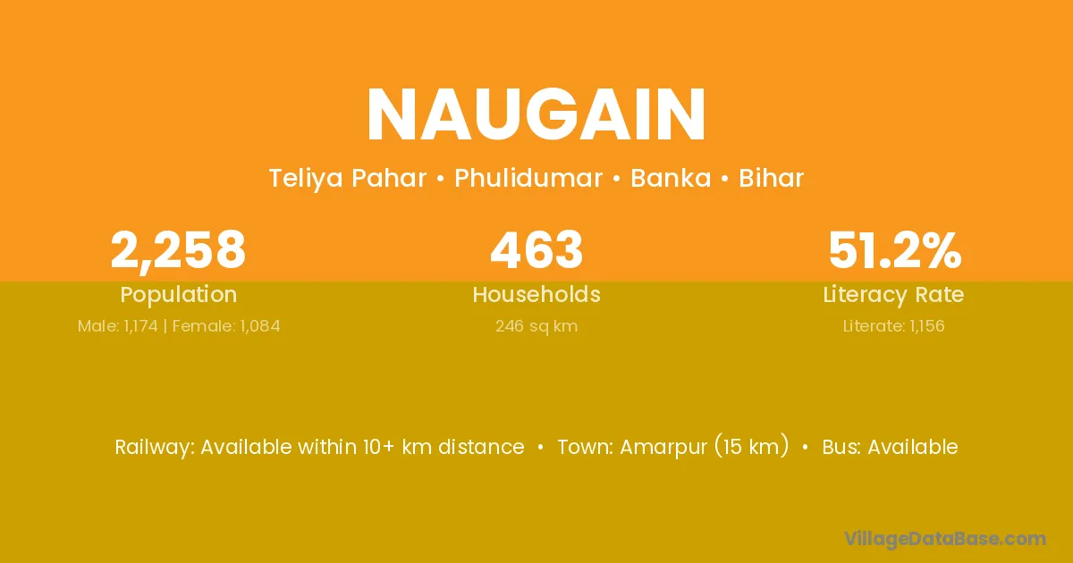 Sasaram (4 km) is the nearest town to Naugain village for major economic activities and is located approximately 4 km away.