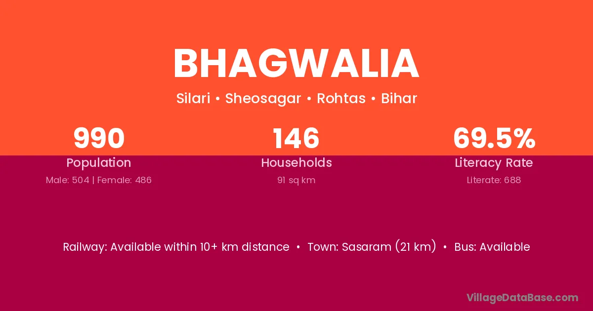 Sasaram (21 km) is the nearest town to Bhagwalia village for major economic activities and is located approximately 21 km away.
