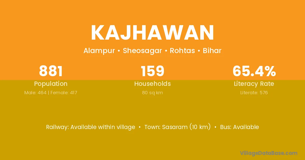 Sasaram (10 km) is the nearest town to Kajhawan village for major economic activities and is located approximately 10 km away.