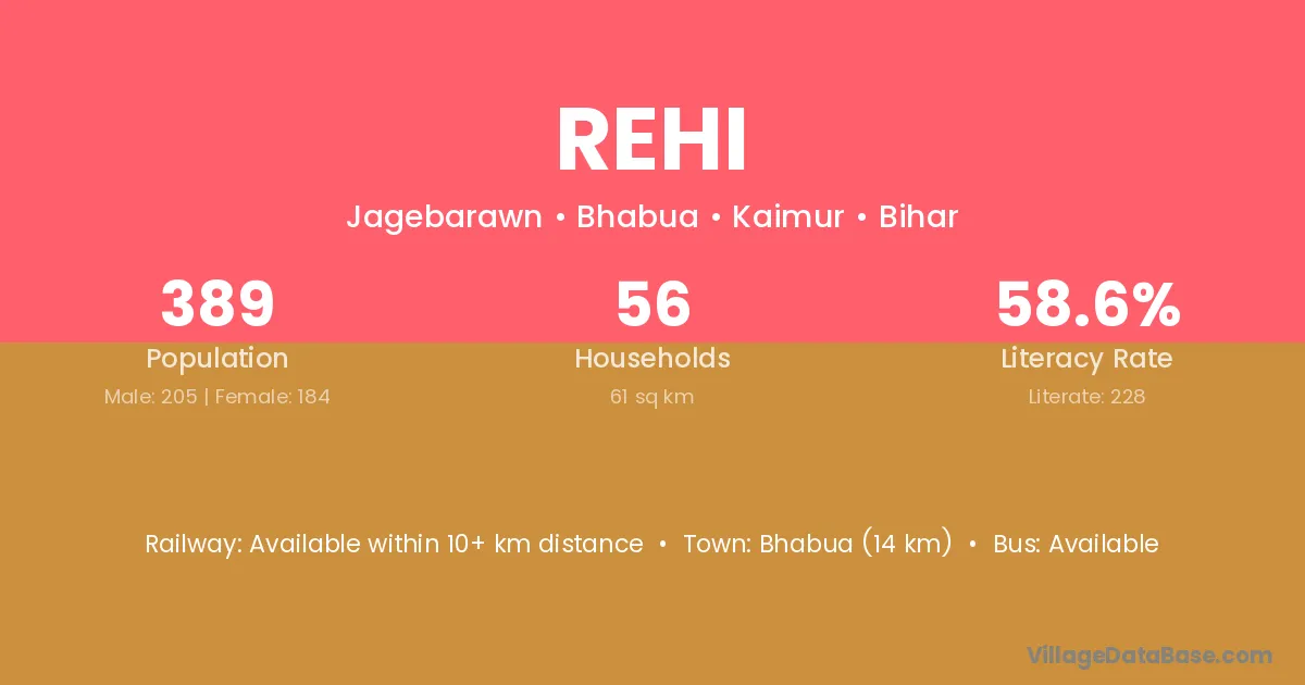 Sasaram (15 km) is the nearest town to Rehi village for major economic activities and is located approximately 15 km away.