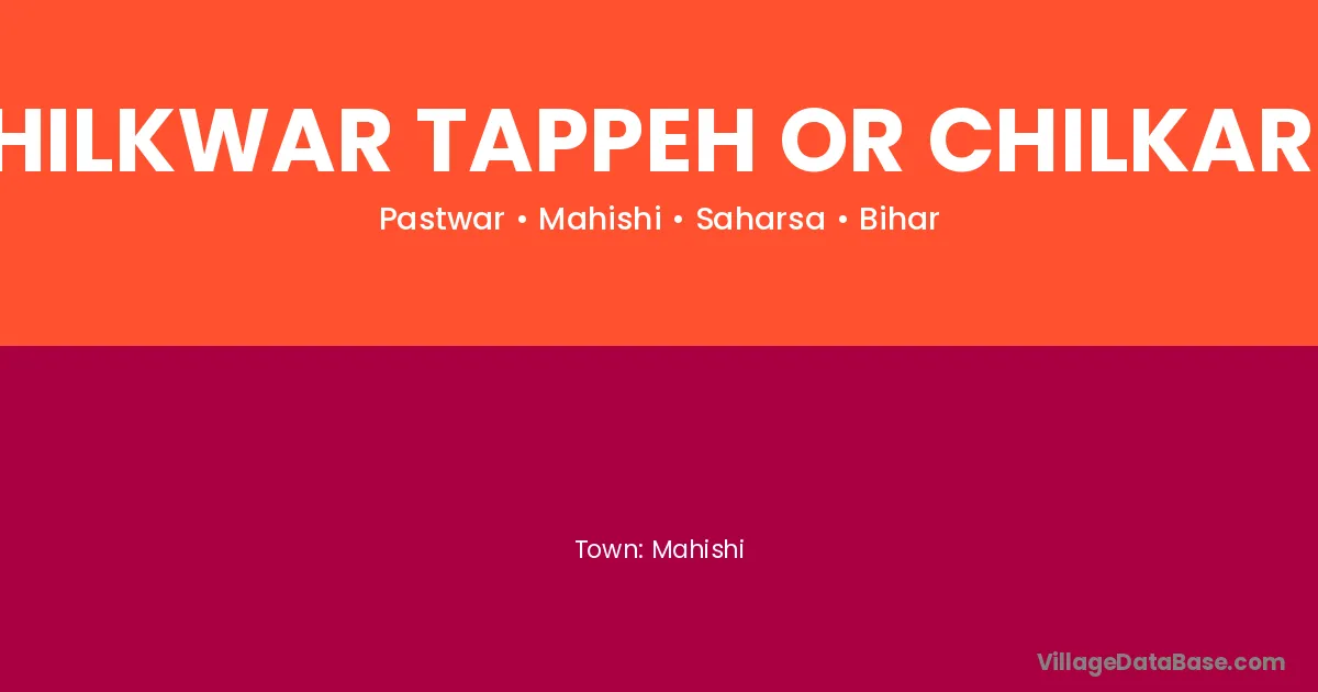 Chilkwar Tappeh Or Chilkarhi village is located in the Mahishi Subdivision of the Saharsa district in Bihar .
