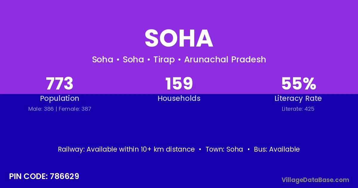 According to Census 2011 information, the village code of Soha village is 852107.