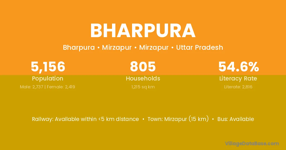 Rosera (10 km) is the nearest town to Bharpura village for major economic activities and is located approximately 10 km away.