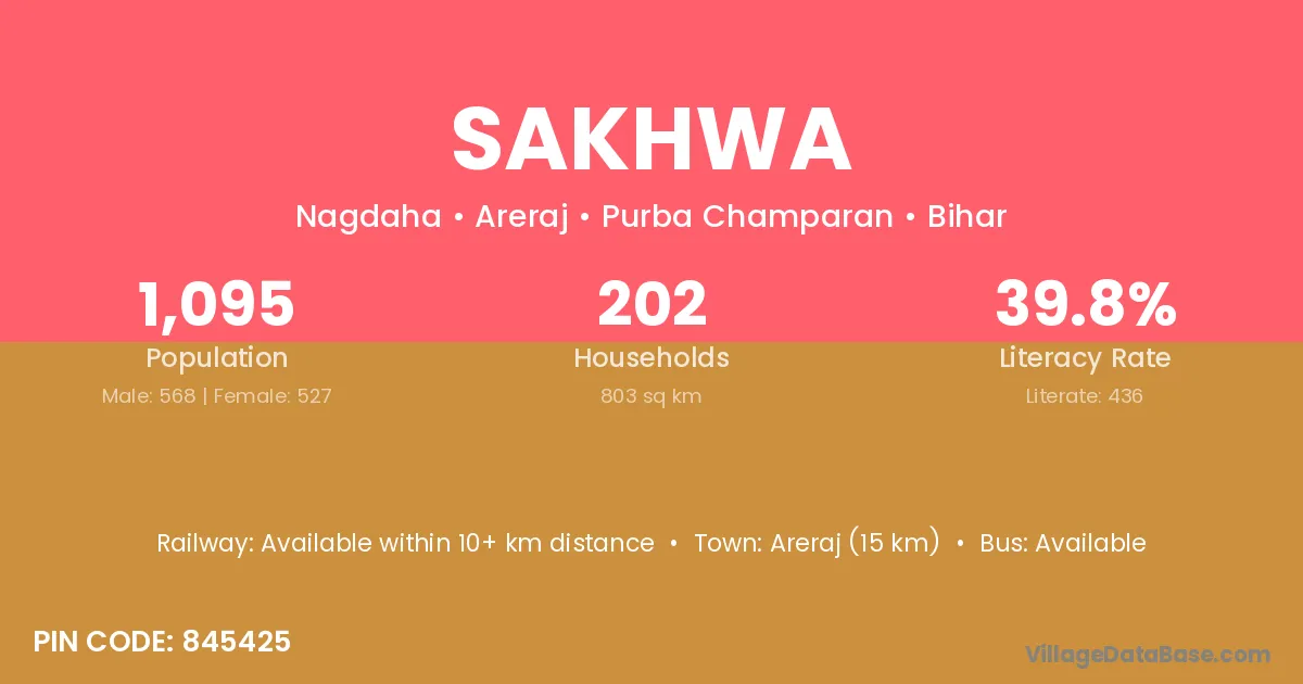 Rosera (40 km) is the nearest town to Sakhwa village for major economic activities and is located approximately 40 km away.