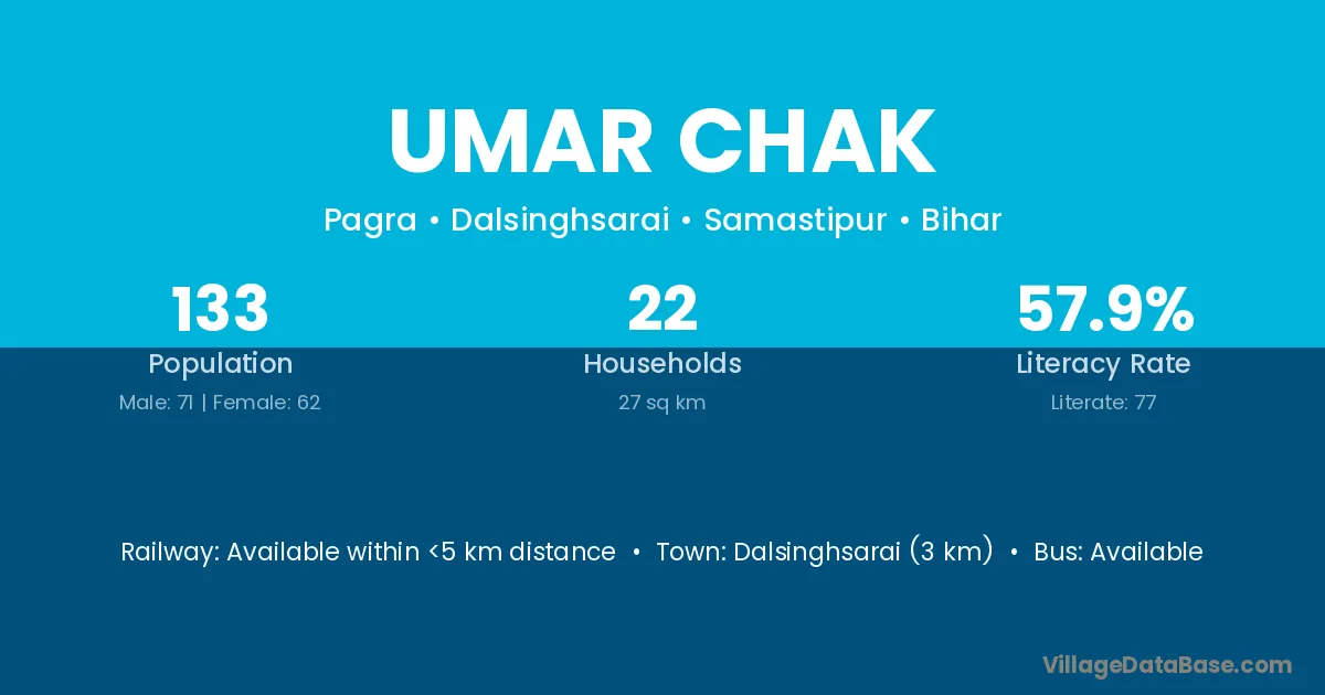 Dalsinghsarai (3 km) is the nearest town to Umar Chak village for major economic activities and is located approximately 3 km away.