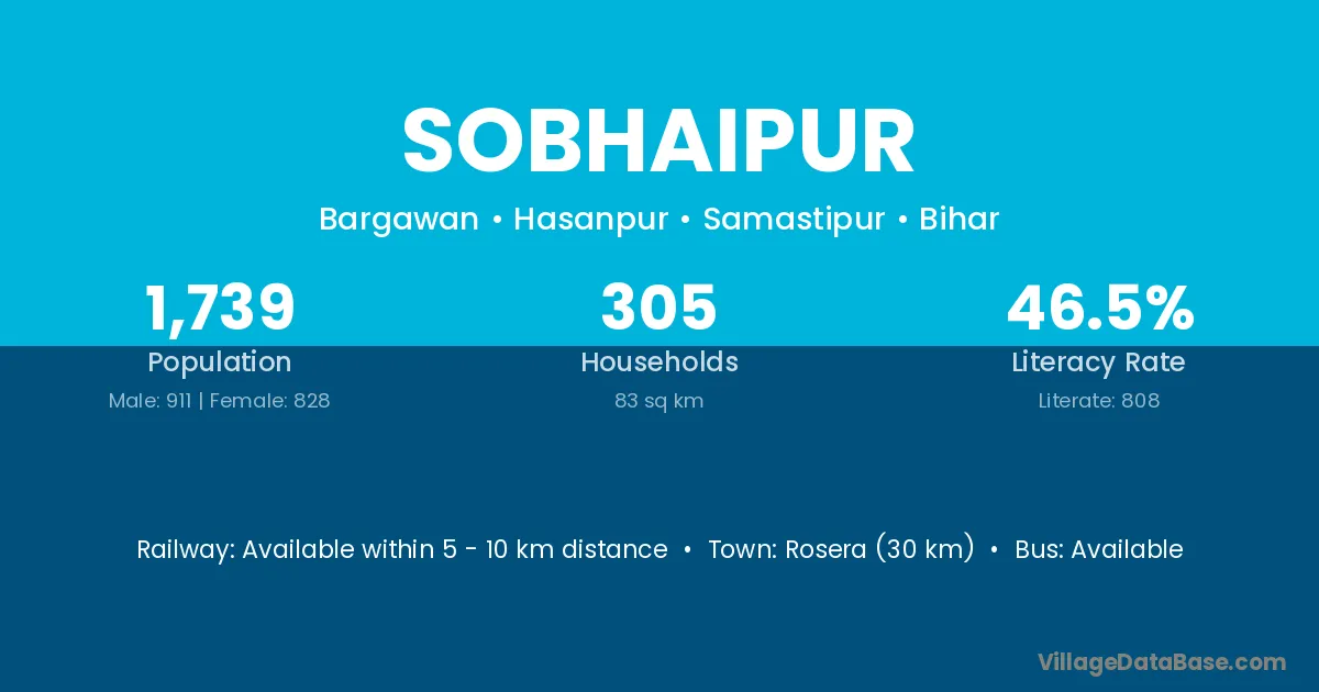 Rosera (30 km) is the nearest town to Sobhaipur village for major economic activities and is located approximately 30 km away.