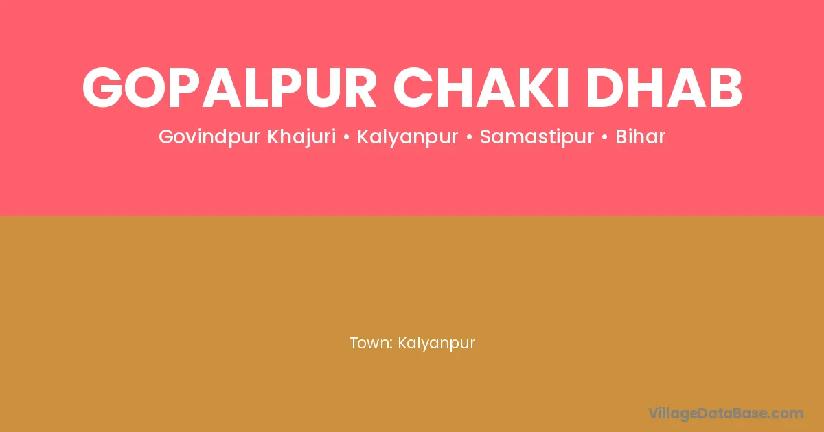 Gopalpur Chaki Dhab village is located in the Kalyanpur Subdivision of the Samastipur district in Bihar .