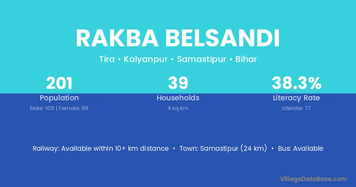 Samastipur (24 km) is the nearest town to Rakba Belsandi village for major economic activities and is located approximately 24 km away.