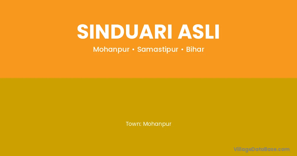 Sinduari Asli village is located in the Mohanpur Subdivision of the Samastipur district in Bihar .