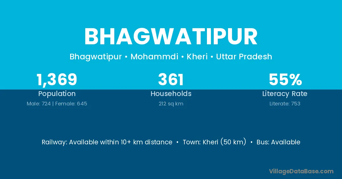 The literacy rate of Bhagwatipur village is 37.31%. Male literacy stands at 44.69% and female literacy at 28.97%.