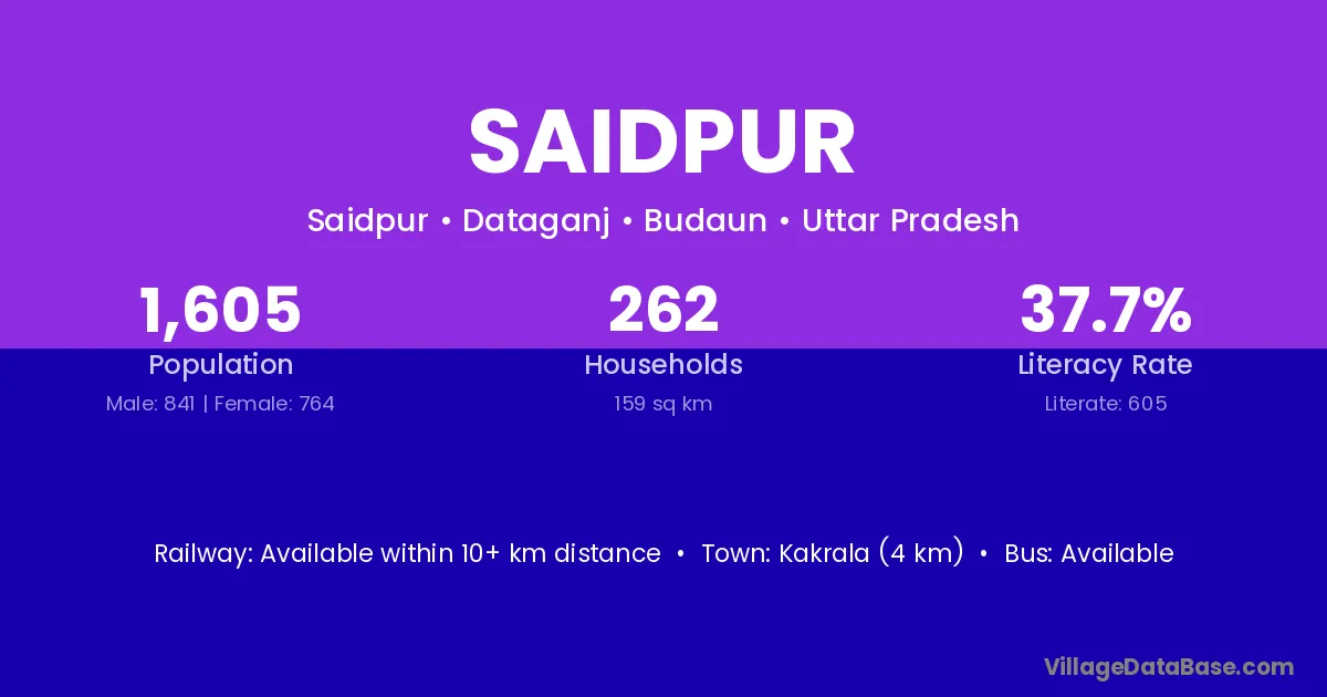Samastipur (42 km) is the nearest town to Saidpur village for major economic activities and is located approximately 42 km away.