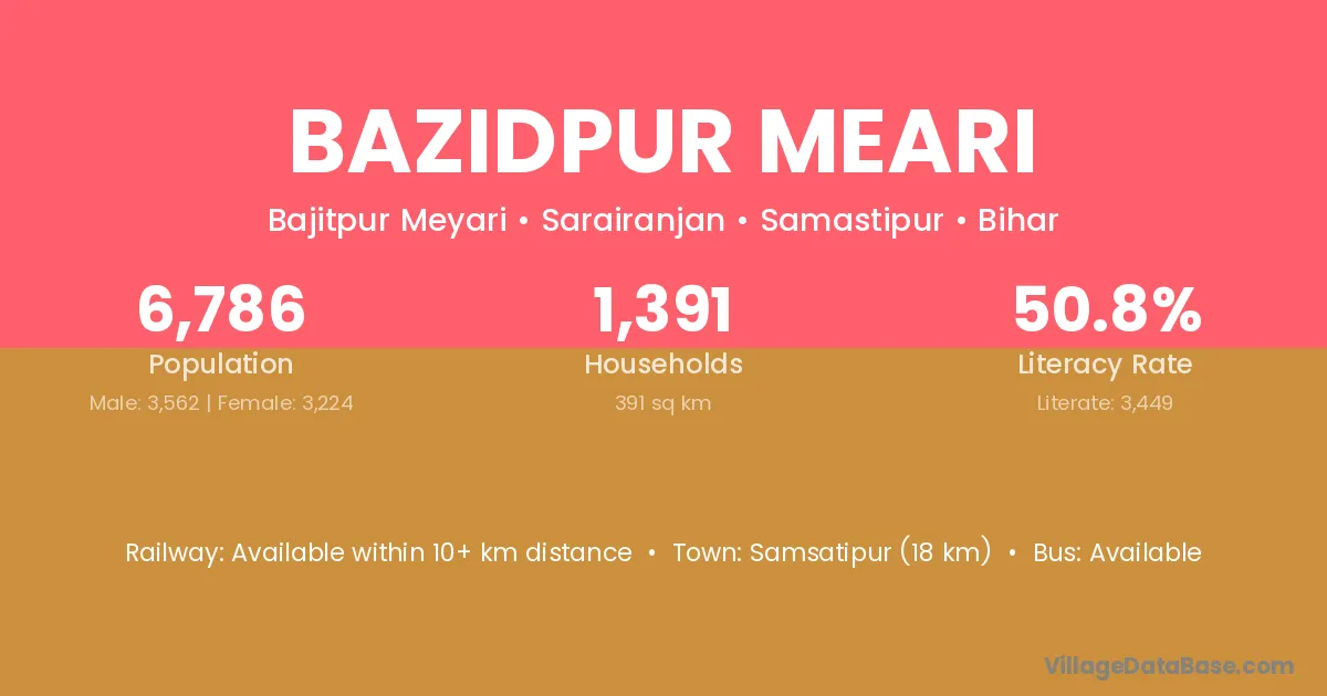 Bazidpur Meari village has a total population of 6,786 people, of which 3,562 are males and 3,224 are females.