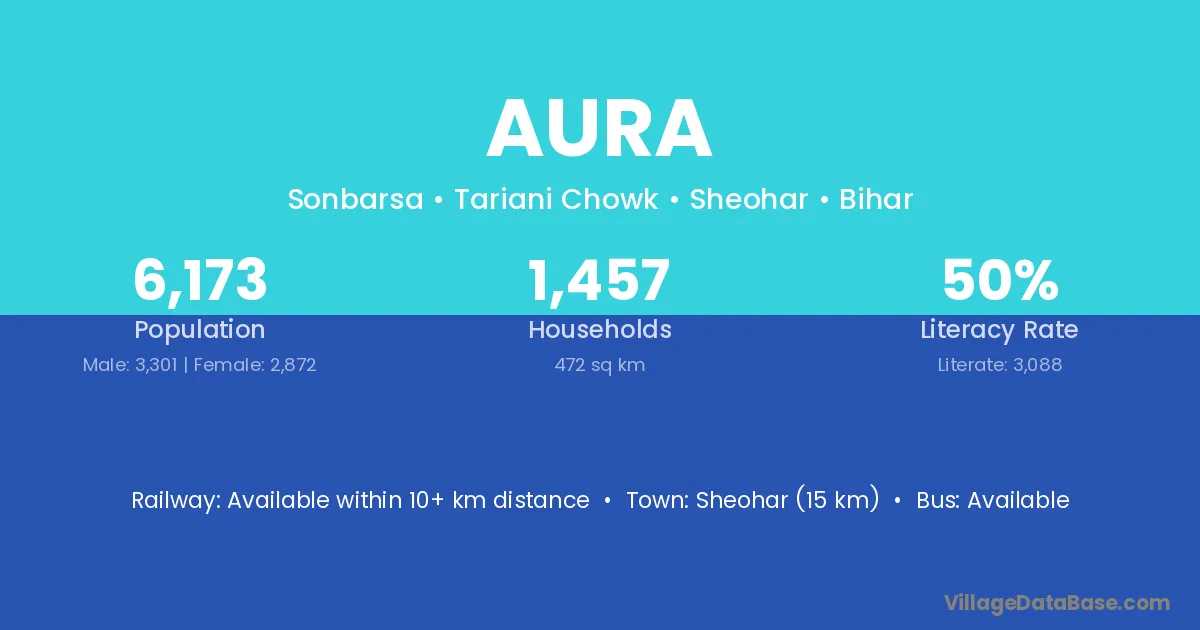 Rosera (23 km) is the nearest town to Aura village for major economic activities and is located approximately 23 km away.