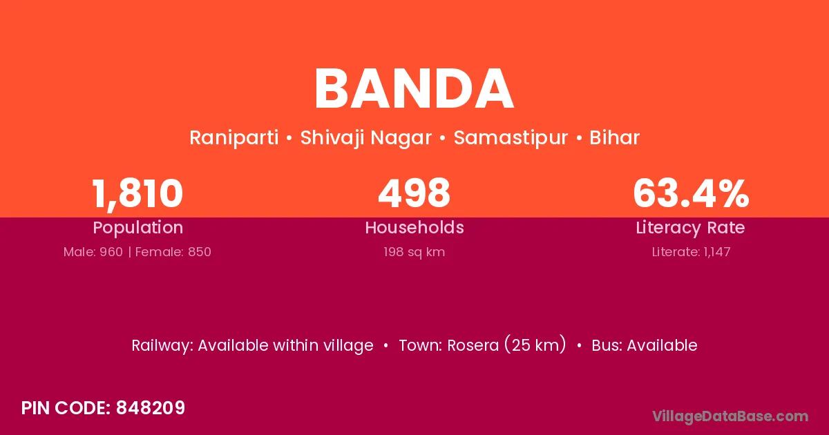 Banda village has a total population of 1,810 people, of which 960 are males and 850 are females.