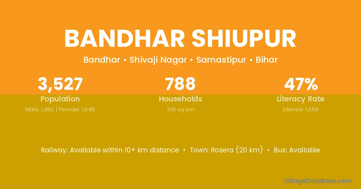 Rosera (20 km) is the nearest town to Bandhar Shiupur village for major economic activities and is located approximately 20 km away.
