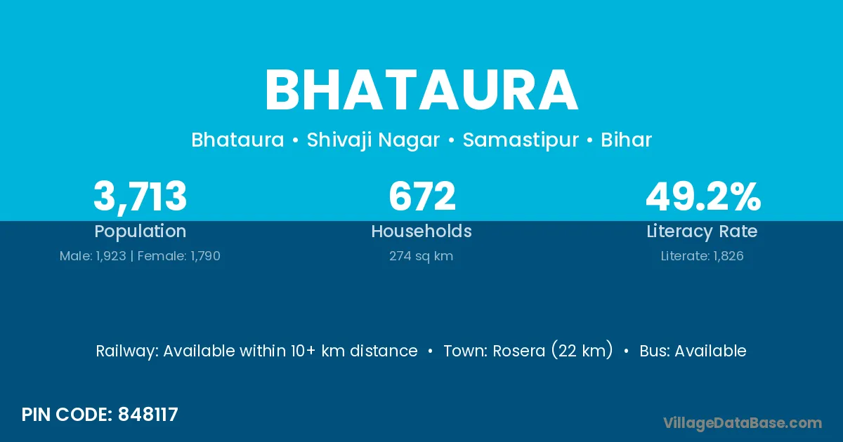 Rosera (22 km) is the nearest town to Bhataura village for major economic activities and is located approximately 22 km away.