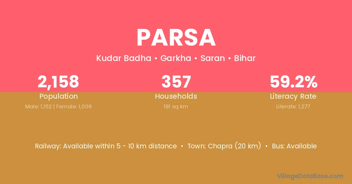 Rosera (22 km) is the nearest town to Parsa village for major economic activities and is located approximately 22 km away.