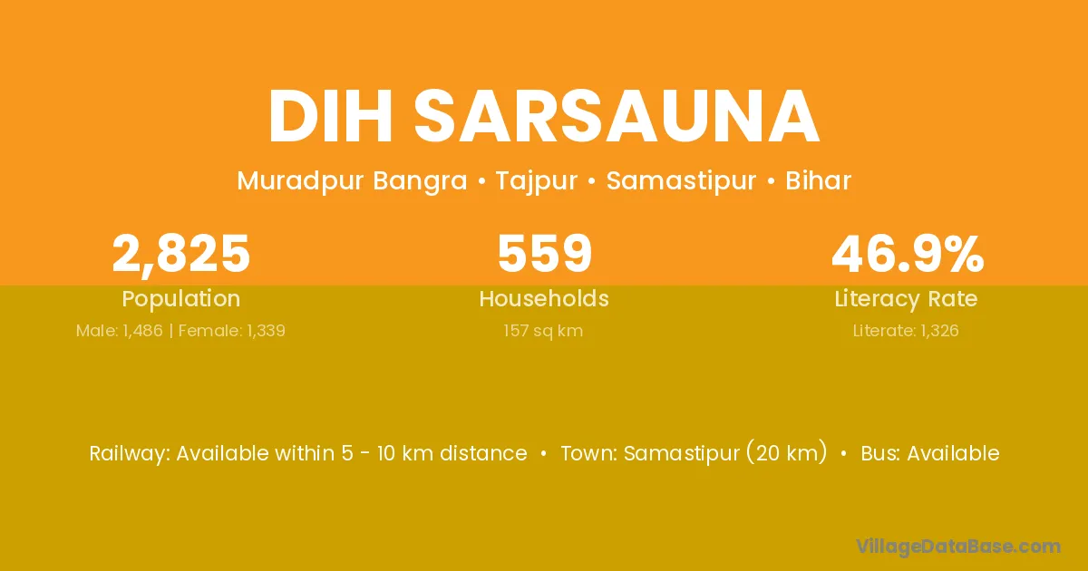 Samastipur (20 km) is the nearest town to Dih Sarsauna village for major economic activities and is located approximately 20 km away.