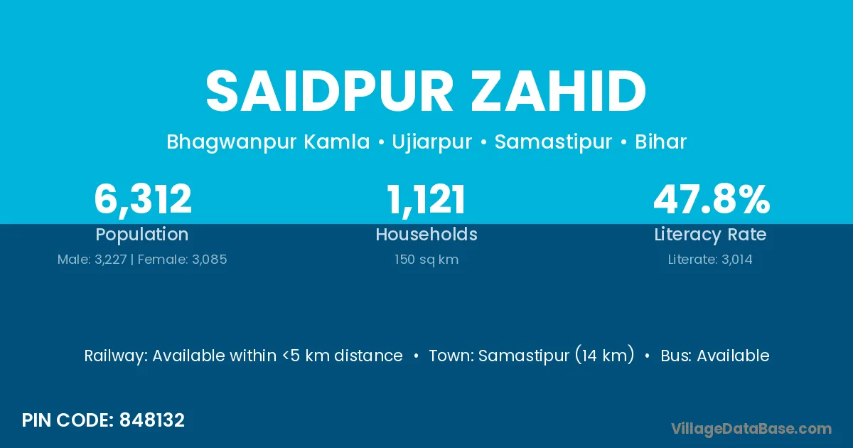 Samastipur (14 km) is the nearest town to Saidpur Zahid village for major economic activities and is located approximately 14 km away.