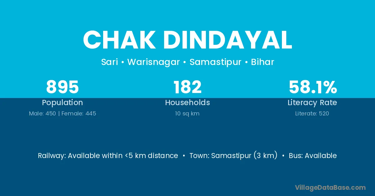 Chak Dindayal village has a total population of 895 people, of which 450 are males and 445 are females.
