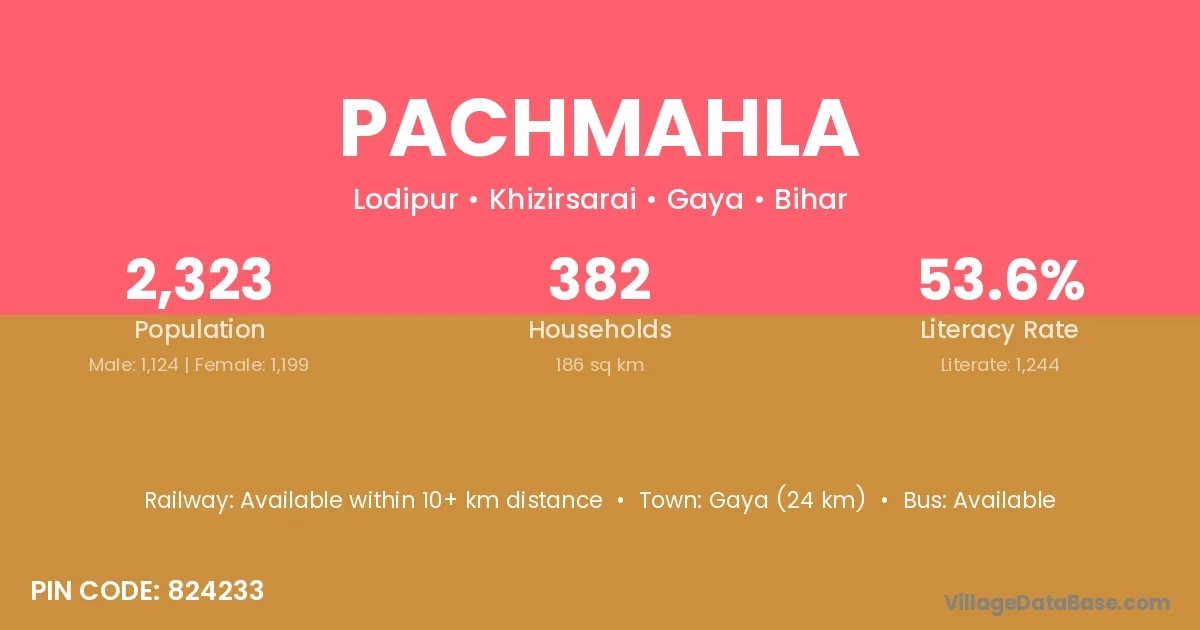 Chapra (20 km) is the nearest town to Pachmahla village for major economic activities and is located approximately 20 km away.