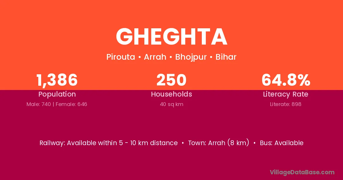 Chapra (10 km) is the nearest town to Gheghta village for major economic activities and is located approximately 10 km away.