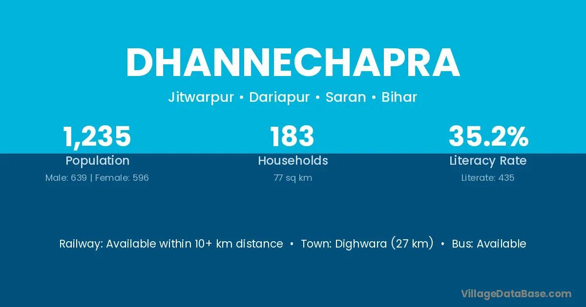 Dighwara (27 km) is the nearest town to Dhannechapra village for major economic activities and is located approximately 27 km away.