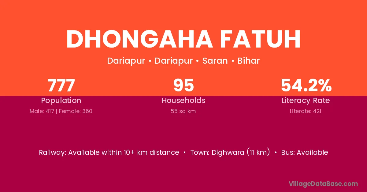 Dighwara (11 km) is the nearest town to Dhongaha Fatuh village for major economic activities and is located approximately 11 km away.