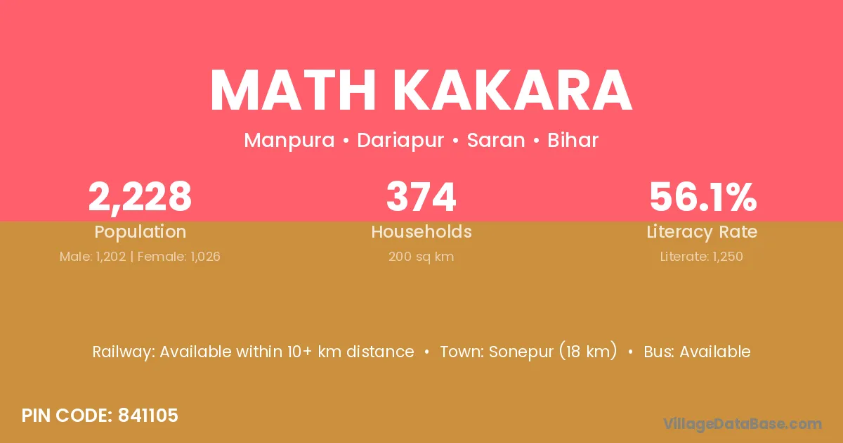 According to Census 2011 information, the village code of Math Kakara village is 841105.