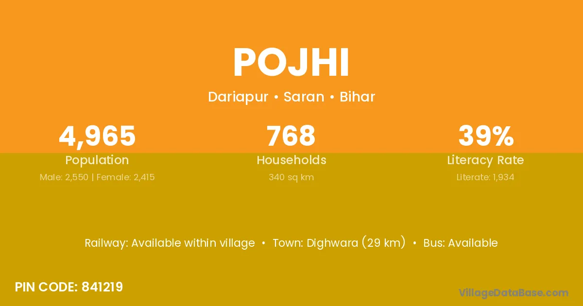 Pojhi village is located in the Dariapur Subdivision of the Saran district in Bihar .