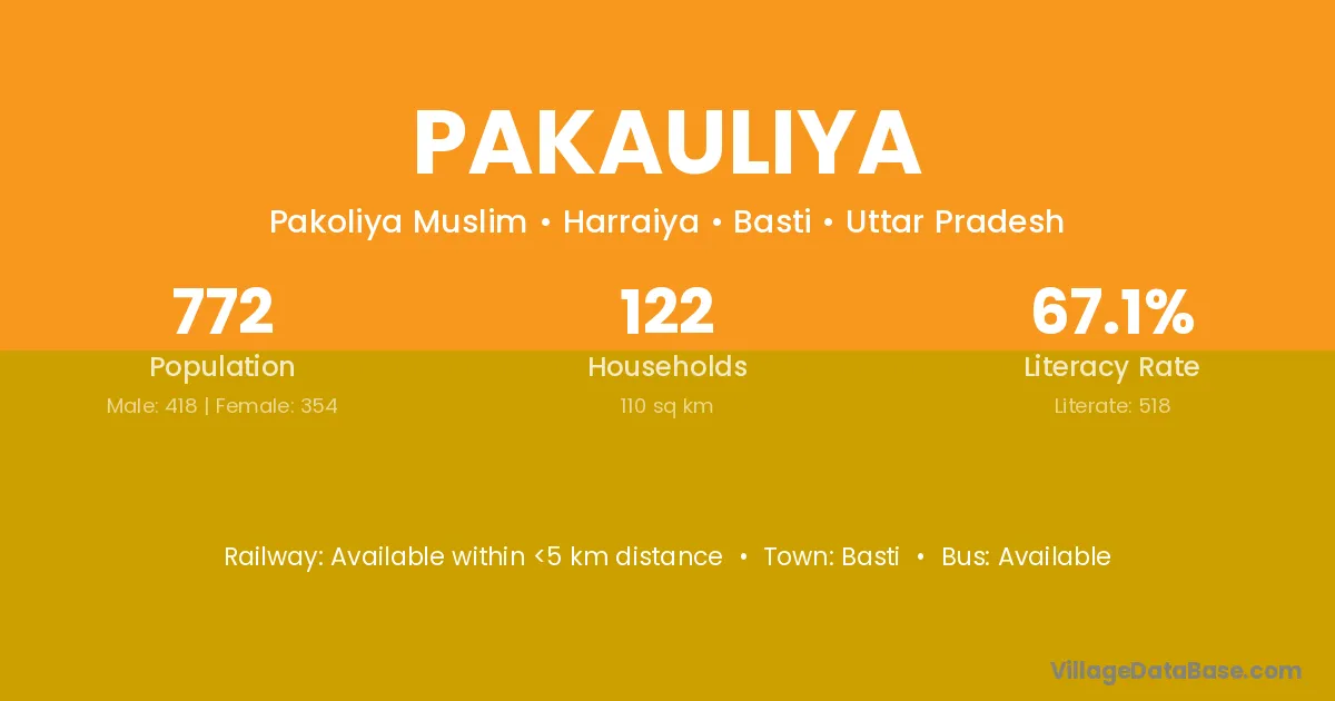 Pakauliya village has a total population of 1,532 people, of which 806 are males and 726 are females.