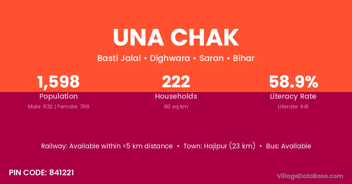 Hajipur (23 km) is the nearest town to Una Chak village for major economic activities and is located approximately 23 km away.