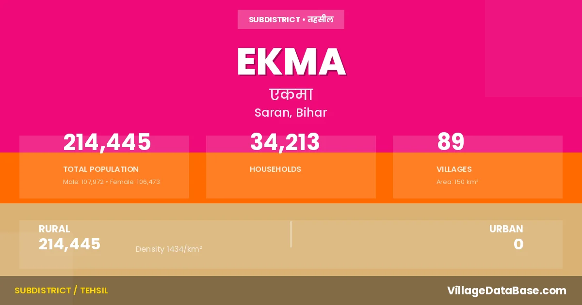 Ekma is a town and Subdivision in the Saran district of the Bihar. In India, a Subdivision is a subdivision of a district responsible for the administration and revenue collection of a specific area within the district. Subdivisions play a crucial role in the local governance structure, contributing significantly to the development and administration of their communities.