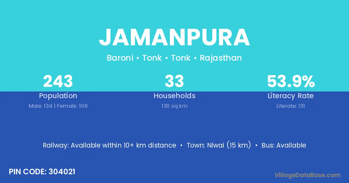 Siwan (25 km) is the nearest town to Jamanpura village for major economic activities and is located approximately 25 km away.