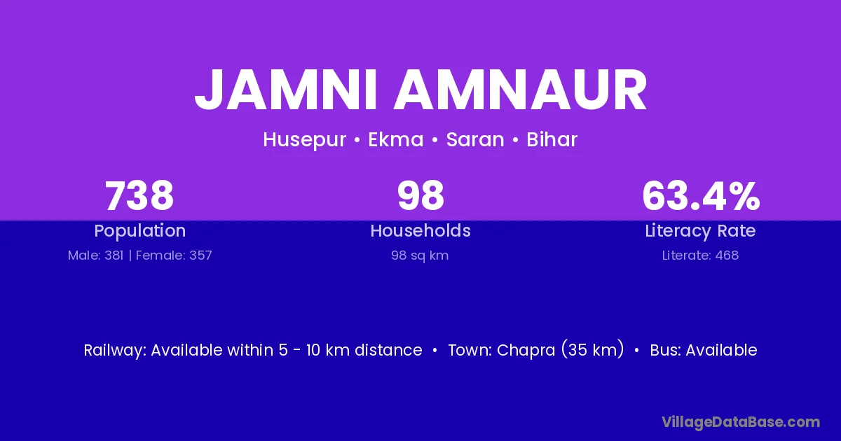 Chapra (35 km) is the nearest town to Jamni Amnaur village for major economic activities and is located approximately 35 km away.