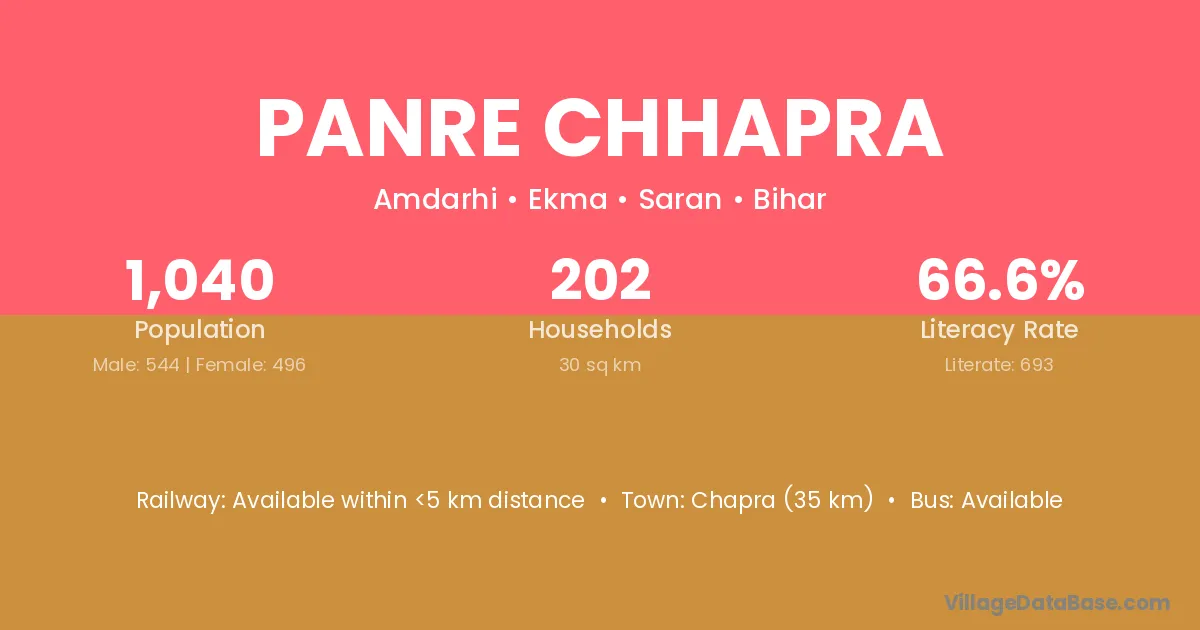 Panre Chhapra village has a total population of 1,040 people, of which 544 are males and 496 are females.