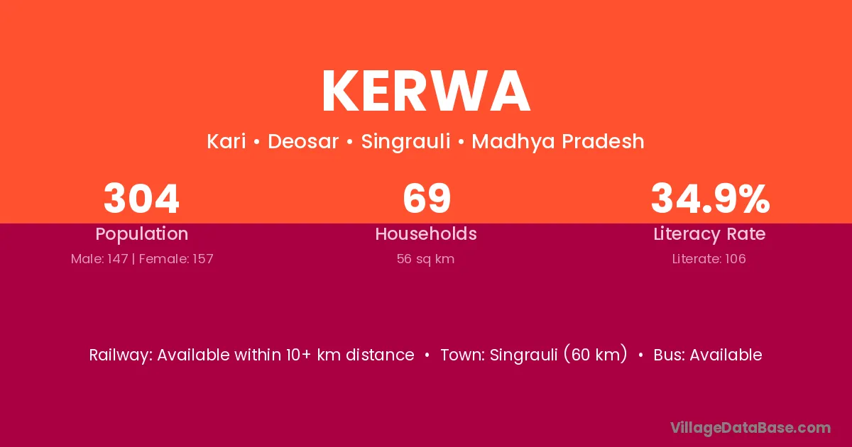 Kerwa village has a total population of 5,714 people, of which 2,746 are males and 2,968 are females.
