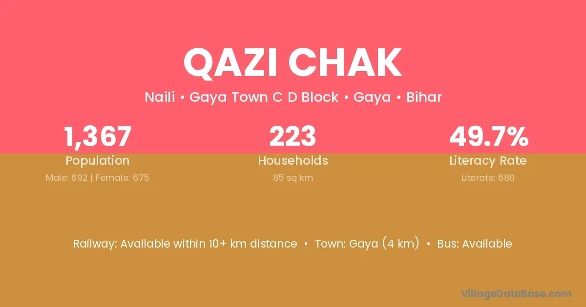 Chapra (50 km) is the nearest town to Qazi Chak village for major economic activities and is located approximately 50 km away.
