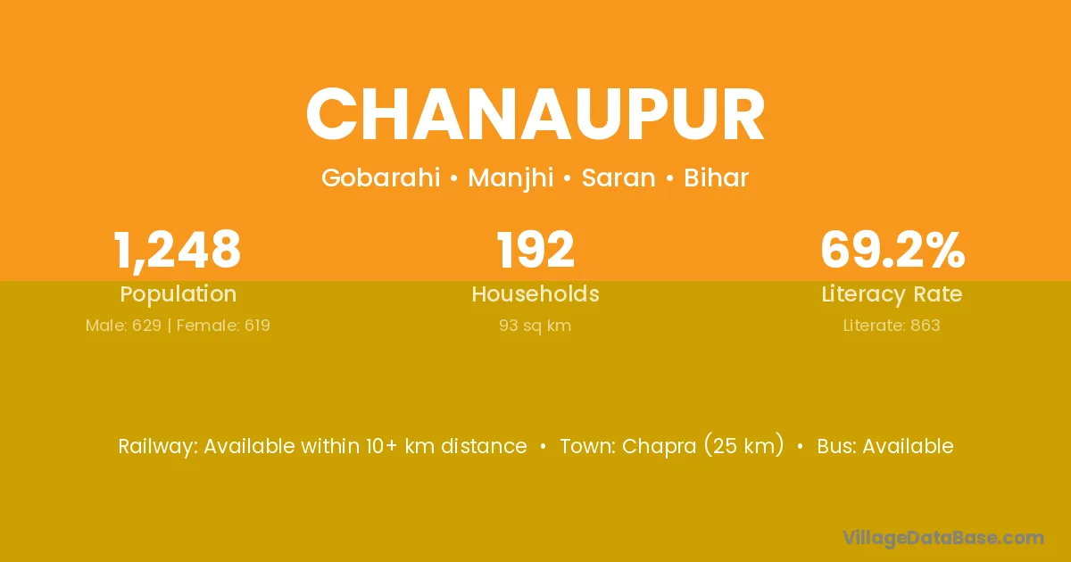 Chanaupur village has a total population of 1,248 people, of which 629 are males and 619 are females.