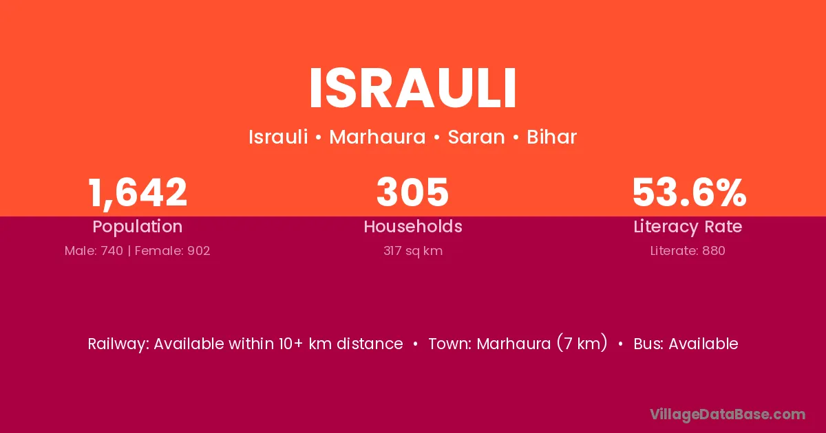 Marhaura (7 km) is the nearest town to Israuli village for major economic activities and is located approximately 7 km away.