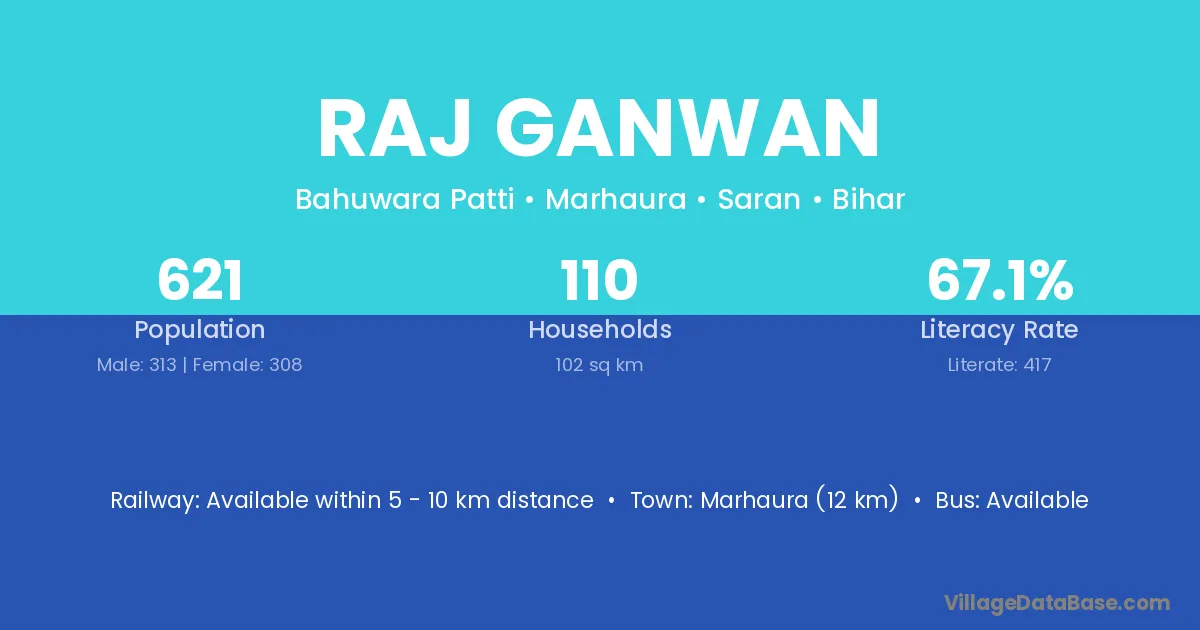 Marhaura (12 km) is the nearest town to Raj Ganwan village for major economic activities and is located approximately 12 km away.