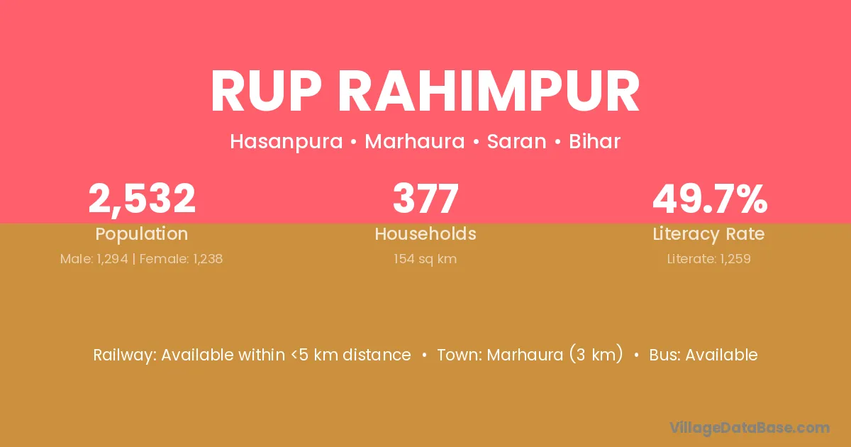 Marhaura (3 km) is the nearest town to Rup Rahimpur village for major economic activities and is located approximately 3 km away.