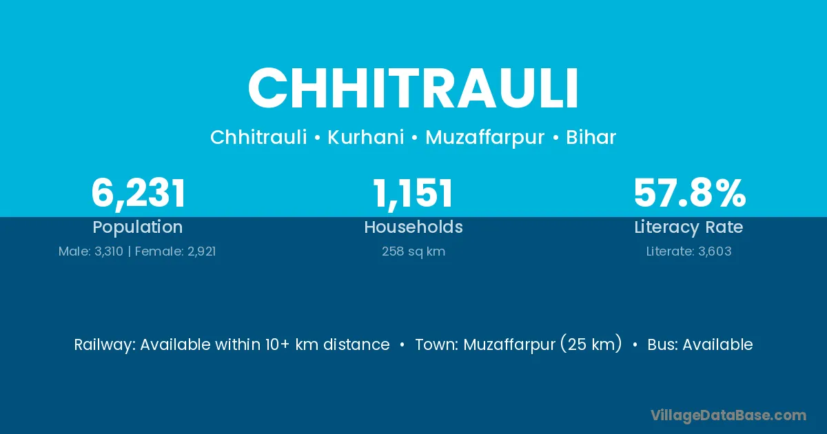 Chapra (12 km) is the nearest town to Chhitrauli village for major economic activities and is located approximately 12 km away.