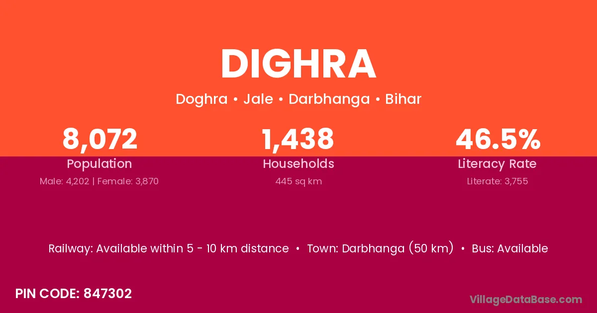 Chapra (46 km) is the nearest town to Dighra village for major economic activities and is located approximately 46 km away.