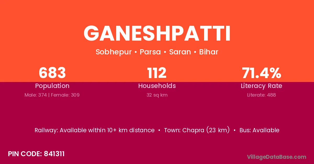 Chapra (23 km) is the nearest town to Ganeshpatti village for major economic activities and is located approximately 23 km away.
