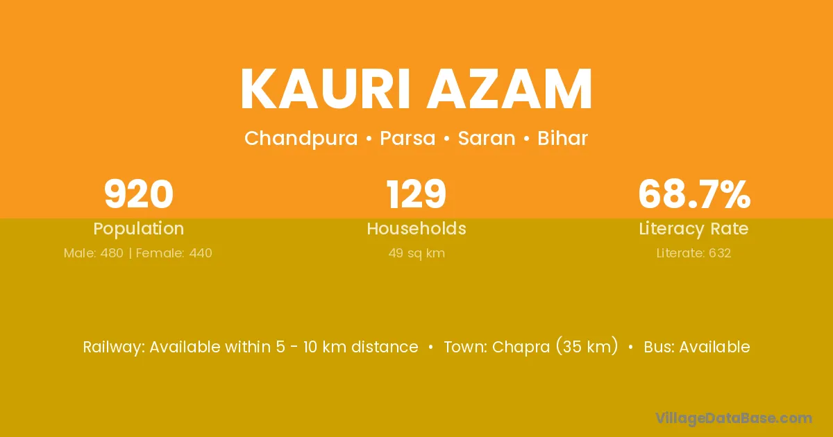 Chapra (35 km) is the nearest town to Kauri Azam village for major economic activities and is located approximately 35 km away.
