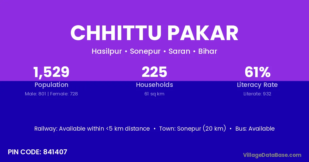 Chhittu Pakar village has a total population of 1,529 people, of which 801 are males and 728 are females.