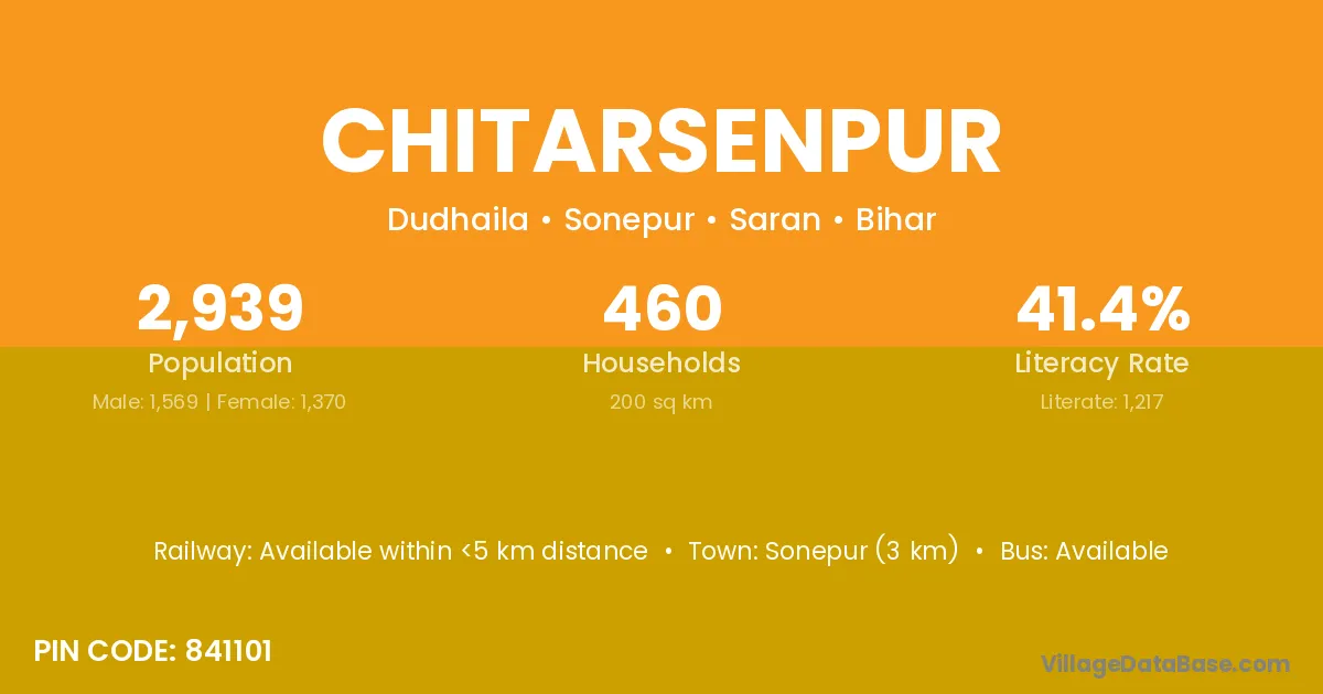 Chitarsenpur village has a total population of 2,939 people, of which 1,569 are males and 1,370 are females.