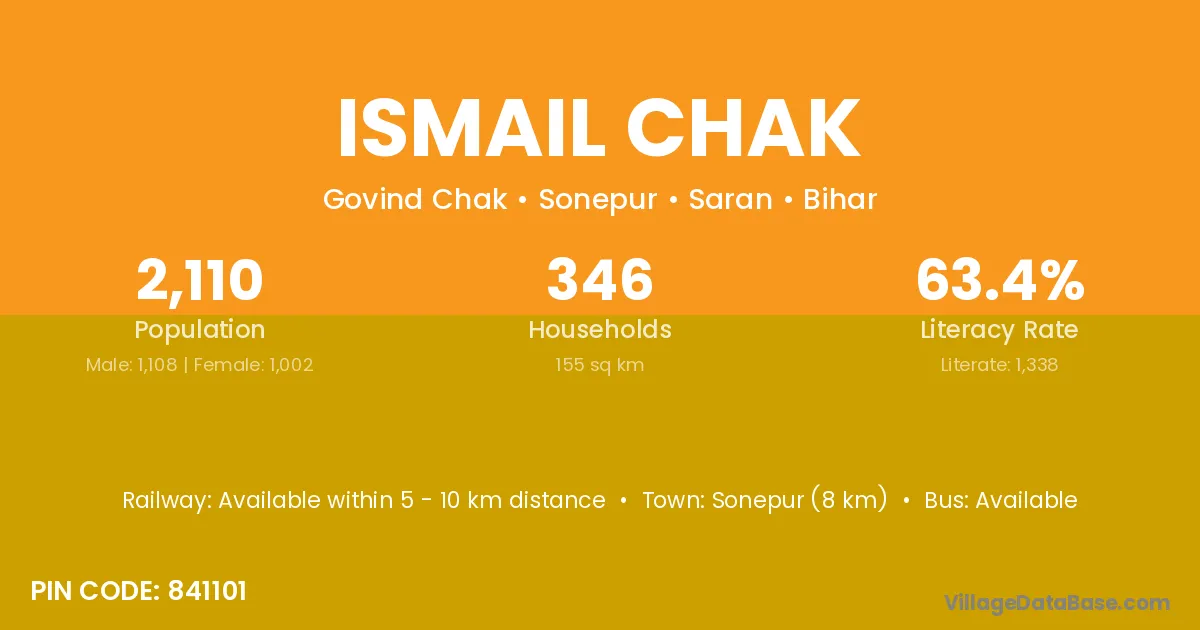Sonepur (8 km) is the nearest town to Ismail Chak village for major economic activities and is located approximately 8 km away.