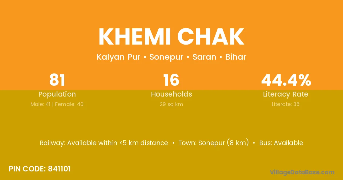 Khemi Chak village has a total population of 81 people, of which 41 are males and 40 are females.